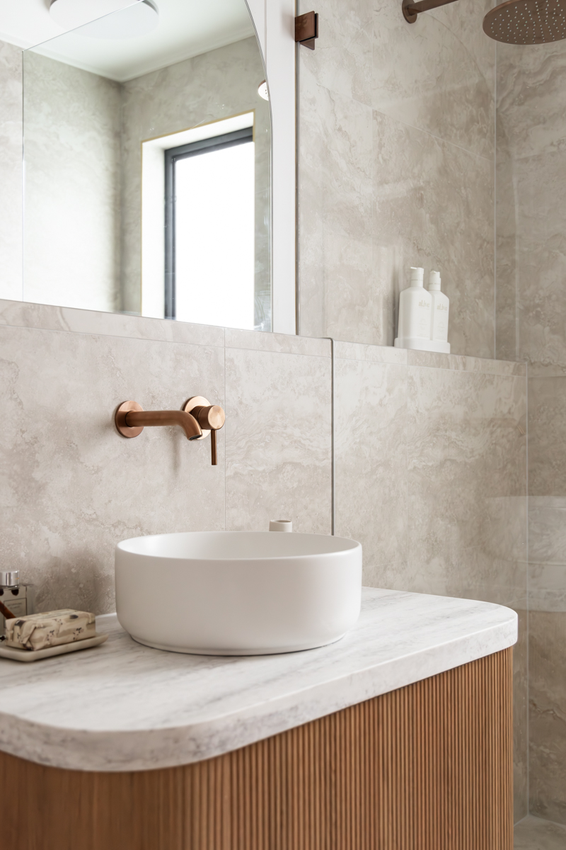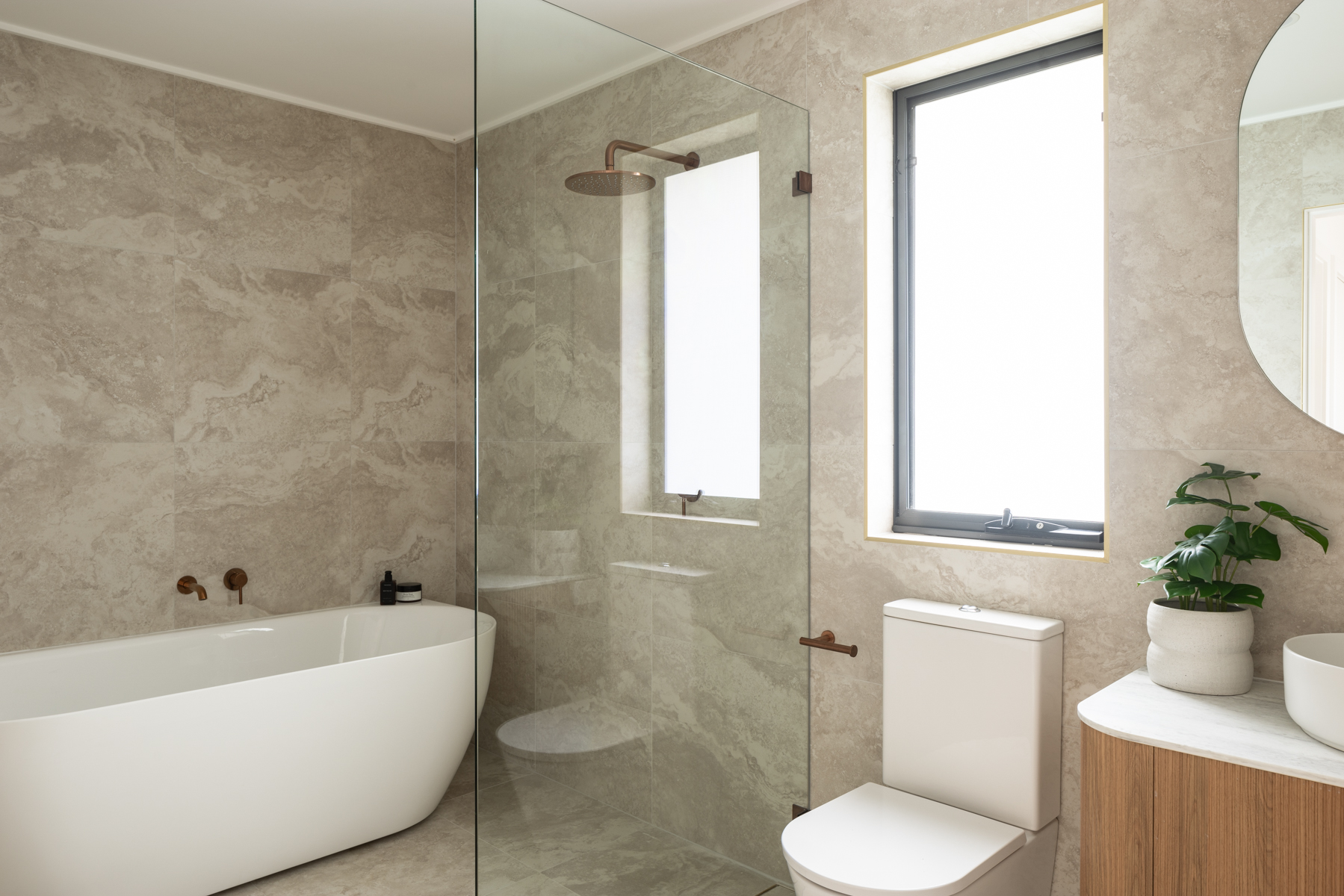 Comfort in Every Detail Each of the four bedrooms is generously proportioned with built-in wardrobes, while the master suite offers a walk-in robe and a stylish ensuite. Two modern bathrooms, a luxurious freestanding bath, separate shower and an additional powder room ensure convenience and comfort for the whole household. Beyond the main living spaces, thoughtful inclusions such as the internal laundry with custom cabinetry, ducted air conditioning, beautiful flooring and clever storage solutions demonstrate the precision and care of an experienced Wollongong Duplex Builder.